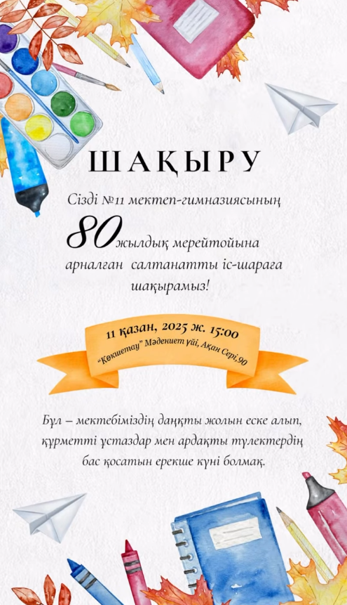 Биыл сүйікті №11 мектеп-гимназиямыз 80 жылдық мерейтойын атап өтуде!