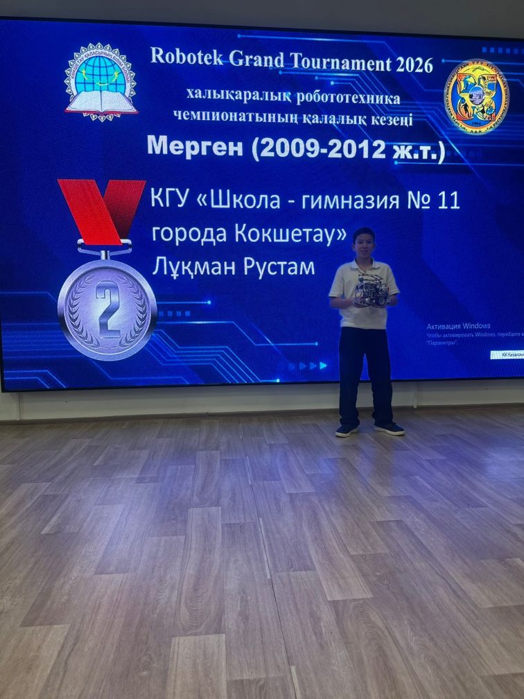 Прошел городской этап чемпионата робототехники "Robotek Grand Tournament", где ученик 9" Б "класса Лукман Рустам принял участие в категории" Мерген " и занял призовое 2 место. Поздравляем!