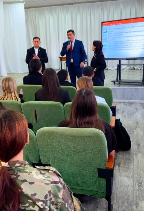 Осы жұмыс шеңберінде оқушылардың бойында "заң және тәртіп" идеологемасы шеңберінде адалдық, әдептілік, патриотизм және құқықтық мәдениет сияқты қасиеттерді дамытуға бағытталған"Адал азамат" ("адал азамат") жобасы іске асырылуда. № 11 мектеп-гимназиясында "AMANAT" партиясы Ақмола облыстық филиалы төрағасының орынбасары Ақманат Ахниетқызы Әлімбетовамен, сондай-ақ "Жастар рухы"жастар қанатының Ақмола облыстық филиалының төрағасы Сұлтанбек Евгеньевич Бекешевпен кездесу өтті. Кездесу барысында өскелең ұрпақты тәрбиелеудің маңызды мәселелері талқыланды.